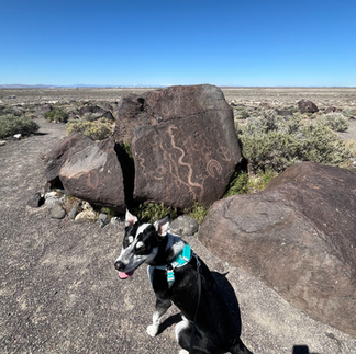 If you get to the end of the trail rather quickly, I recommend turning around and going back the same way so catch of some petroglyphs you might have missed. Hidden cave is down the road 1.4 miles but this trip we didn't do it because it was getting hot for Blue. That will be on the list for next time!